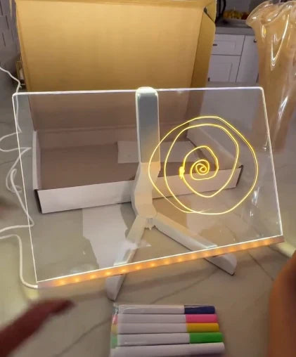 Featuring a sleek acrylic panel paired with built-in LED lighting, this glow board offers a stylish and functional creative tool. The balanced illumination improves visibility while remaining soft enough for extended use.